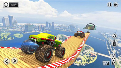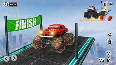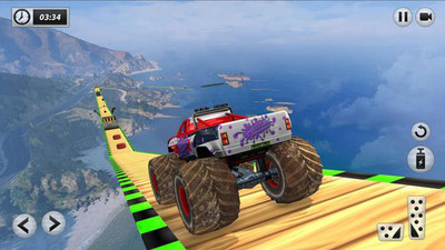 怪物卡车巨型匝道游戏的特性,例如游戏的操作、画面风格、音效效果等。