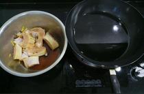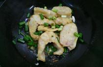 | 2.锅里加入油,将葱姜倒入炒香,然后捞出,倒入鮰鱼翻炒,喷入料酒。 |