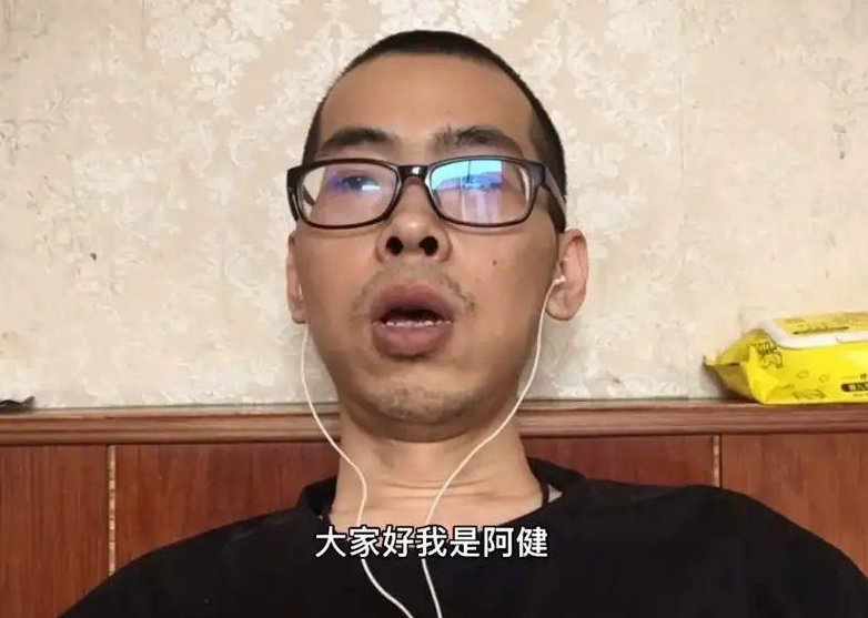 2020年5月,阿健在某平台上发出了第一条向网友求助的视频《一个直肠癌晚期患者的无助请求》。视频里的他,戴着一副黑框眼镜,看上去文质彬彬,头发也很乌黑茂密,此时他只有33岁。在他自己的视频分享中,除了分享自己的疾病与相关科普,以自己的亲身经历为例子,呼吁大家一定要重视身体健康。他还表示自己的家庭很贫困,父母70多岁,有两个可爱的女儿。对于自己患病,他曾表示,觉得自己对不起父母,对不起孩子。