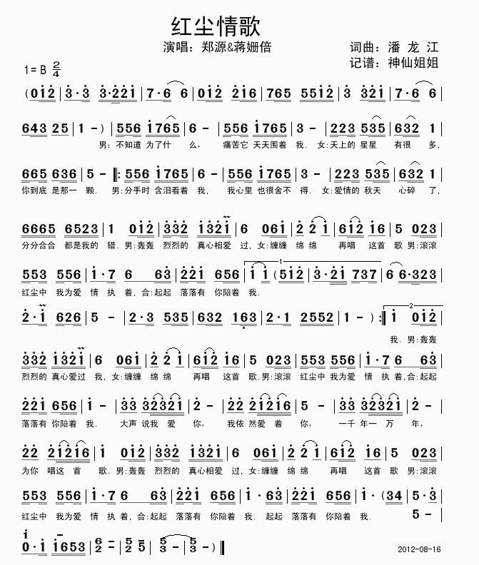 红尘情歌(2012年郑源蒋姗倍演唱歌曲)