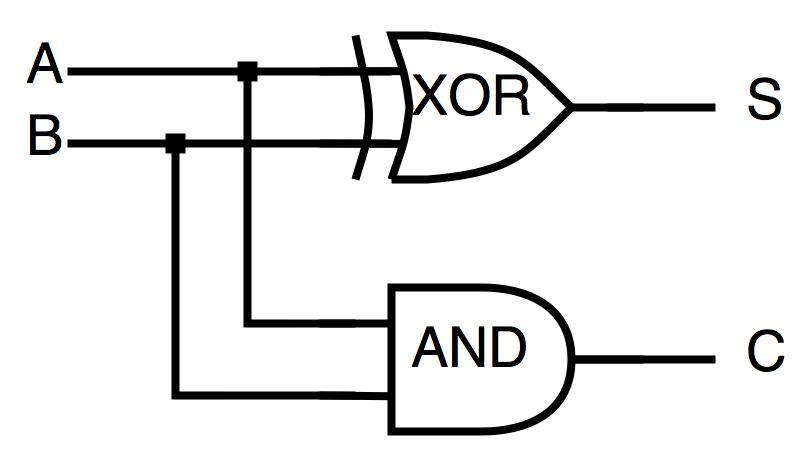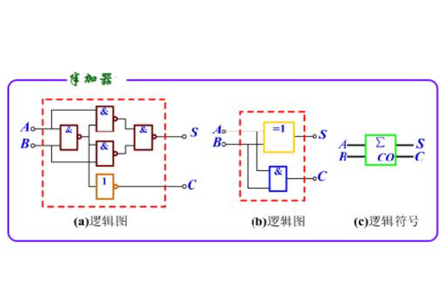 有两个二进制的输入,其将输入的值相加,并输出结果到和(S