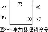 所谓半加就是不考虑进位的加法,它的真值表如下 (见表):