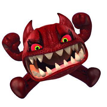 特征:头上的黑魔王牙齿(已和其本人合体),有暗红的身体,样子和随从小黑怪差不多。